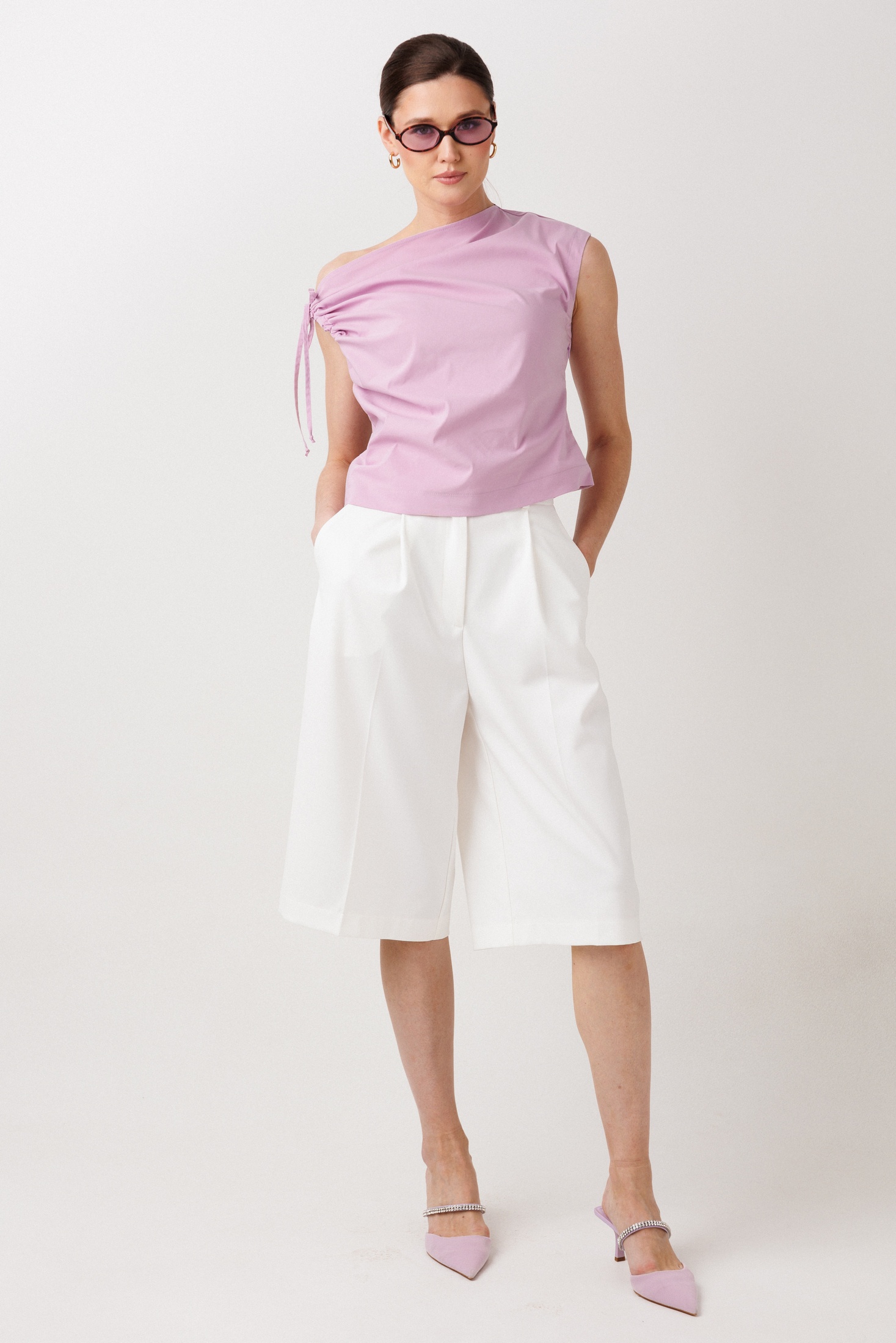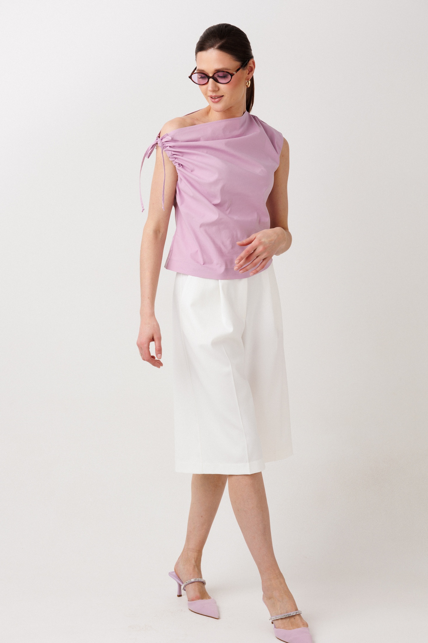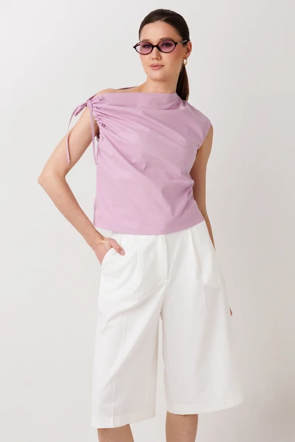 Топ 1024 сиреневый ERTANNO — это современная интерпретация лёгкости и утончённой женственности. Коллекция бренда ERTANNO предлагает модель, выполненную из смеси хлопка, полиэстера и эластана, что обеспечивает комфорт и удобство. Полуприлегающий фасон с асимметричным вырезом горловины создаёт стильный и выразительный образ. Особенностью топа является регулируемая сборка на правой пройме с кулиской, которая добавляет индивидуальности. Потайная молния в левом боковом шве поддерживает чистоту силуэта. Сиреневый цвет и лёгкий силуэт делают топ идеальным выбором для весеннее-летнего сезона. Он легко комбинируется с различными элементами гардероба, подходя как для повседневного, так и для нарядного использования.