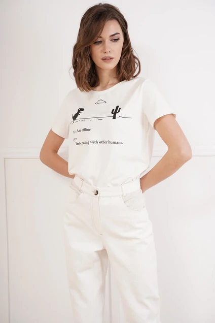 Базовые футболким - это конечно хорошо, но что делать, если хочется привнести в образ яркости, иронии и немного артистизма? Лучший способ выразить себя - выбрать вариант с классным "говорящим" принтом. Футболка классического кроя с втачным рукавом. Длина футболки около 60 см. Длина рукава около 15 см.