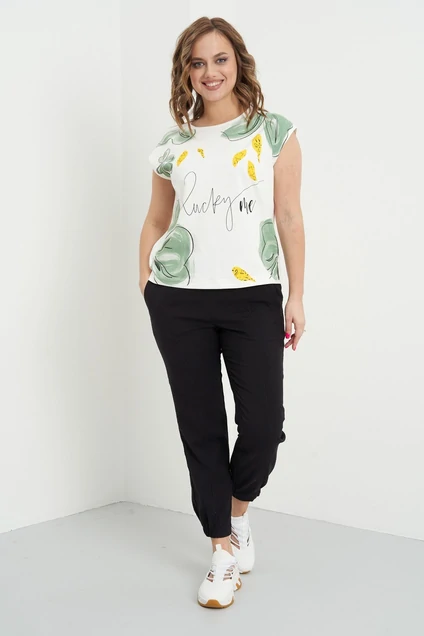 Базовые футболким - это конечно хорошо, но что делать, если хочется привнести в образ яркости, иронии и немного артистизма? Лучший способ выразить себя - выбрать вариант с классным "говорящим" принтом. Футболка классического кроя с втачным рукавом. Длина футболки около 60 см.