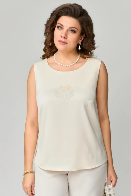 Топ "Димия" из легкой слегка жатой атласной ткани, прямого силуэта, по полочке нагрудная вытачка, проймы и горловина обработаны обтачкой, на полочке декоративная печать.