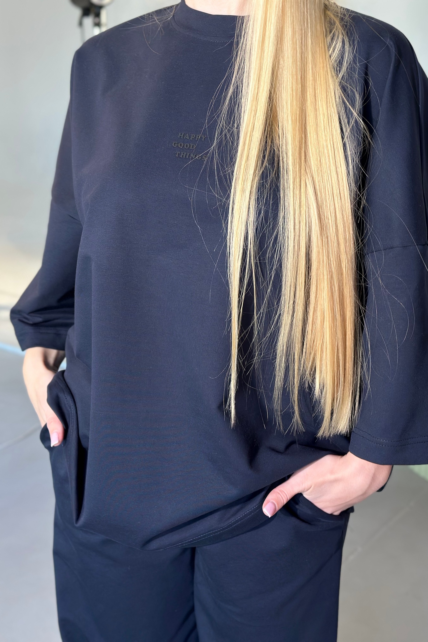 Футболка 25ICY100 темно-синий ICY Street станет идеальным дополнением вашего гардероба. Коллекция бренда ICY предлагает современные модели из плотного трикотажа, состоящего из 95% хлопка и 5% эластана для максимального комфорта и эластичности. Футболка oversize силуэта обеспечивает расслабленный стиль с удлинёнными рукавами и спущенной линией плеча около 19 см. Круглый вырез горловины и эластичный низ изделия подчеркивают её чистый и премиальный вид. Идеальная длина изделия чуть ниже линии бёдер гарантирует универсальность и удобство. Темно-синий цвет подходит для любого повседневного образа и прекрасно вписывается в сезон весна-осень.
