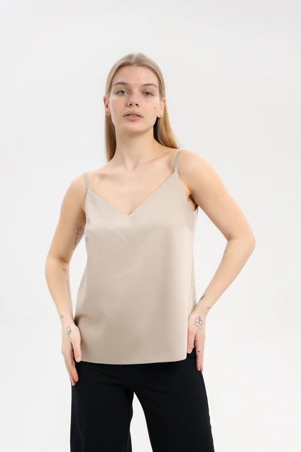 Топ на регулируемых бретелях имеет свободный крой. Топ предназначен для широкого применения: нарядный, офисный, школьный. Фактура материала приятно струится по телу и имеет благородный матовый блеск. Топ дополнит костюмы, жакеты, брюки, юбки карандаш и юбки А силуэта, шорты, джинсы. Учитывая пожелания, добавили в размерный ряд большие размеры.