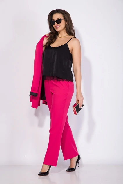 Базовый шелковый топ на регулируемых бретелях с v-образным вырезом декольте. Топ свободного силуэта с нагрудными выточками. Изделие на стрейчевой подкладке, низ которой декорирован ажурным кружевом. Длина – 50-55 см.
