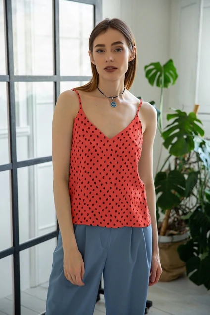 Базовый топ на регулирующихся бретелях отлично подойдет для создания различных образов на каждый день.