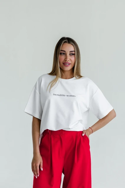 Базовая женская футболка в классическую расцветку свободного кроя - неотъемлемаяя часть гардероба, дополнена популярной фразой. Можно сочетать с брюками, шортами или юбкой, добавив жакет, кардиган или жилет. Комфортная модель, приятная к телу ткань. Разбавит ваши ежедневные образы.