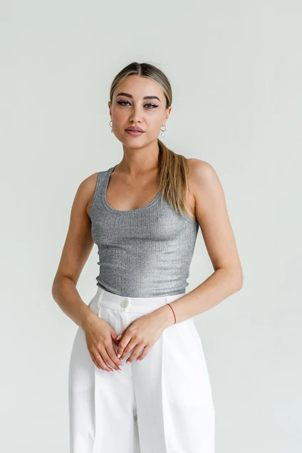 Этот топ - идеальный выбор для тех, кто хочет выглядеть стильно и привлекательно. Он выполнен из блестящей ткани, которая придает ему особый шарм и элегантность. Широкие бретели обеспечивают комфортную посадку и не давят на плечи. Облегающий крой подчеркивает фигуру и создает идеальный силуэт. Вырез горловины округлый и облегающий, что добавляет образу женственности и сексуальности. Этот топ идеально подойдет для вечерних выходов, свиданий или повседневных образов. Он станет вашим любимым элементом гардероба и будет привлекать внимание окружающих.