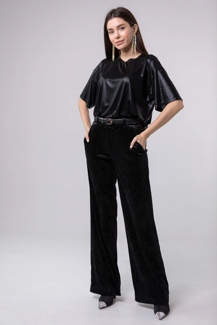 Джемпер женский с коротким рукавом прямого свободного кроя, округлый вырез горловины, спинка и перед цельнокроенные. Выполнен из нарядной ткани. Блузка нарядная женская в классическом черном - отличный вариант для праздничного образа на любое мероприятие: 14 Февраля, 23 Февраля, 8 Марта, Новый год, День рпождение, Юбилей, вечеринка, свидание, деловое мероприятие. С нашим женским вечерним джемпером лекго сочетать брюки, юбки, шорты и различную обувь, подходящую по сезону или месту событий.
