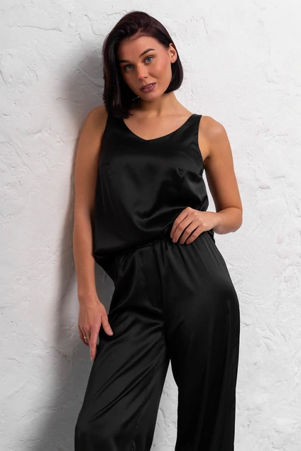 Изысканность и комфорт объединились в этом женском топе из натурального шелка. Отличительной особенностью является V-образный вырез, который спереди и сзади придает топу особую элегантность. Прямой свободный крой обеспечивает идеальную посадку и комфорт в носке, а материал шелк приятно ласкает кожу. В этом топе вы будете чувствовать себя уверенно и стильно в любой ситуации.