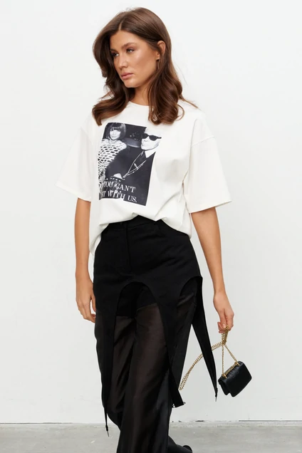 Оверсайз футболка из плотного трикотажа с контрастным принтом «Карл». Линия плеча спущена, горловина отделана эластичной бейкой. Длина по середине спинки 44-48р -61,5 см 50-54р -62,5см Длина рукава 44-54р -19,5 см