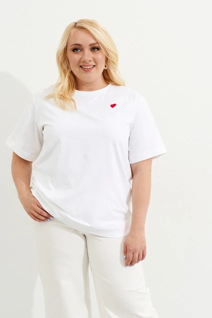 Базовая футболка бренда Ketty из высококачественного хлопкового трикотажа. Модель имеет свободную посадку. Декор в виде сердечка придаст джемперу неповторимость. Наша футболка свободного кроя подойдет для любой фигуры, как для высоких, так и для девушек и женщин среднего роста, под любой образ и стиль. Крой футболки - свободный, модный, легкий оверсайз - очень модно и стильно. Футболку с вышивкой можно носить с любой одеждой - джинсами, юбкой, костюмом. Прямой крой и дышащий материал делают её удобной и комфортной для повседневной носки, для поездок и для прогулок! Подойдёт как в офис, так и как элемент вечернего гардероба!