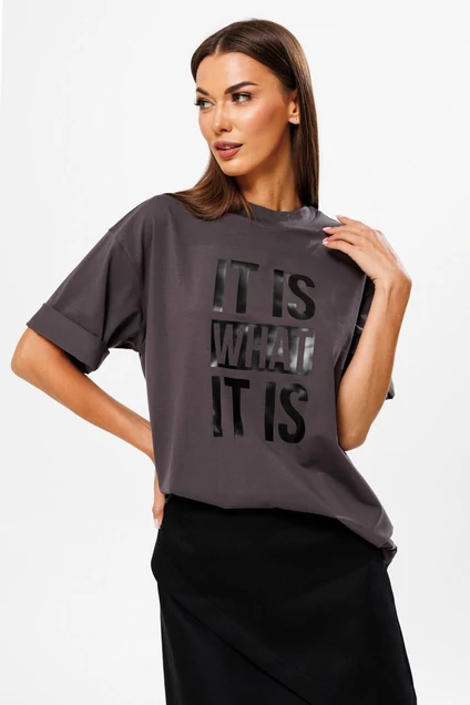 Особенность этой модели — спущенный рукав, который придаёт изделию оригинальный и модный вид. Футболка имеет прямой силуэт, который подходит для разных типов фигур.