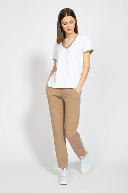 Джемпер с V-образным вырезом и отделкой воротника и манжет в цветах костюмов. Ткань френч терри (2-х ниточный футер) с невероятно нежным внутренним слоем, качество Пенье, плотность 235 г.м2