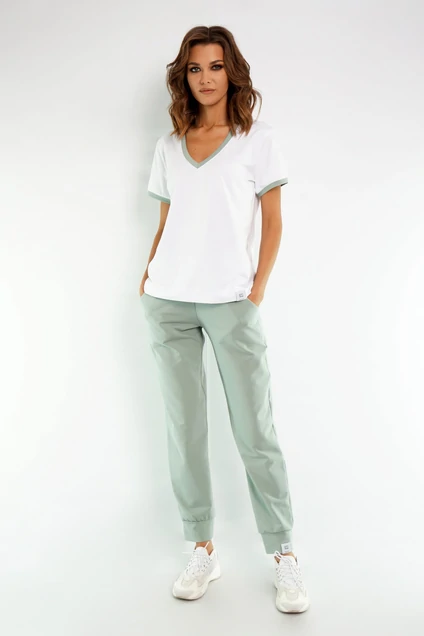 Футболка с V-образным вырезом и отделкой воротника и манжет в цветах костюмов. Ткань френч терри (2-х ниточный футер) с невероятно нежным внутренним слоем, качество Пенье, плотность 235 г.м2