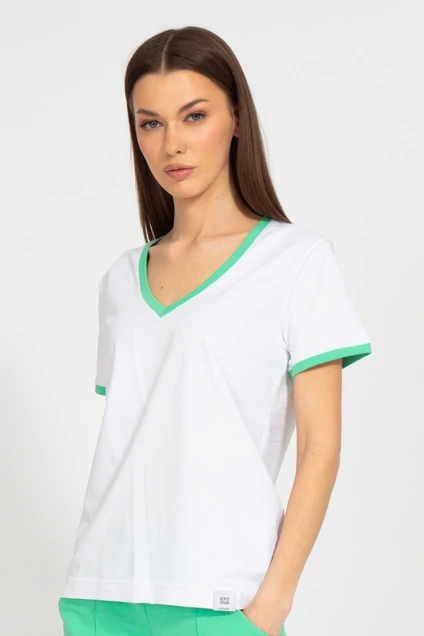 Джемпер с V-образным вырезом и отделкой воротника и манжет в цветах костюмов. Ткань 2-х ниточный футер с невероятно нежным внутренним слоем из хлопка, качество Пенье, плотность 235 г.м2