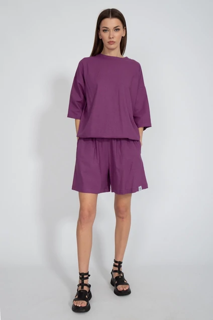 Футболка свободного кроя. С приспущенным рукавом и кулиской по низу изделия с возможностью регулировки ширины низа. Ткань лен. Отлично сочетается с брюками модели 4076 и шортами модели 4074. Рост 170