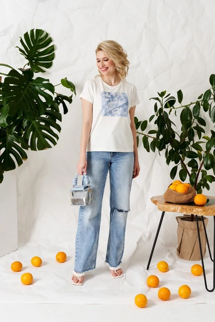 Футболка универсальная, сочетается с любыми джинсами и шортами из вашего гардероба.