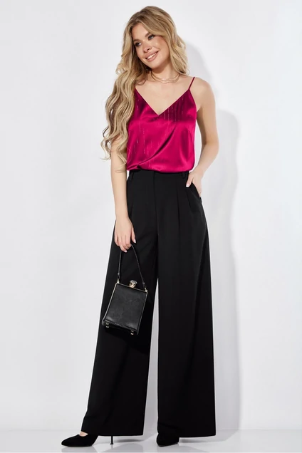 Топ женский, полуприлегающего силуэта, длиной выше линии бедер, на бретелях, с «V-образным» вырезом горловины спинки и переда. Деталь переда топа с нагрудными вытачками.