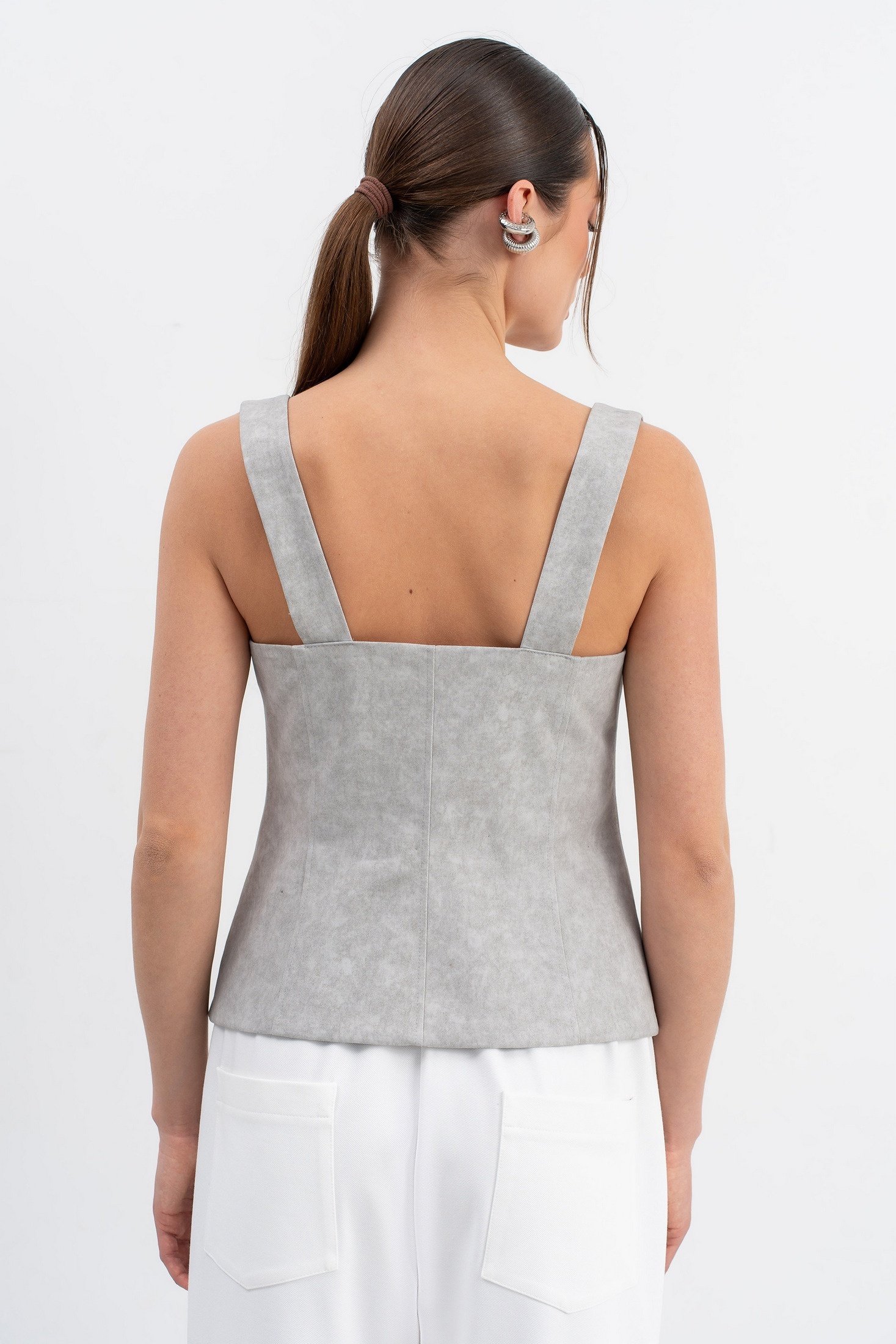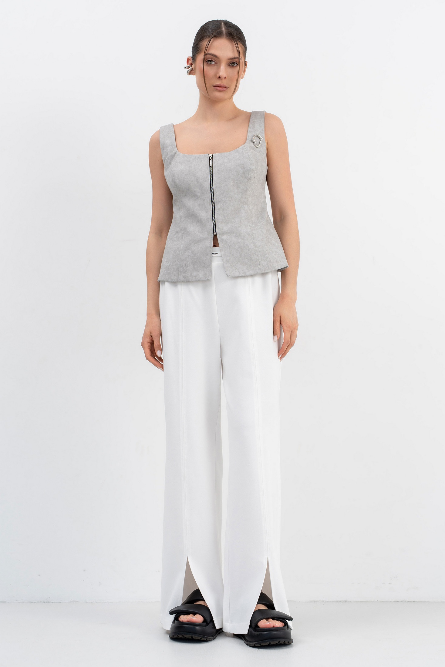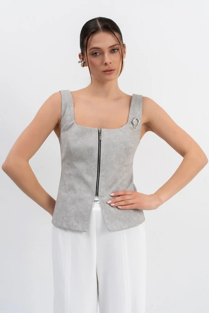 Топ-корсет приталенного силуэта из хлопка,с центральной застёжкой на молнию,функциональная застёжка не только декорирует изделие,но и обеспечивает удобство в носке.В дополнении к цвету молнии съёмная брошь.