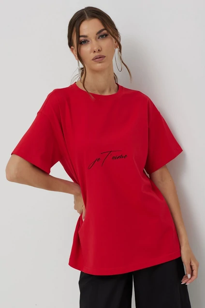 Футболка женская свободного силуэта из комфортного трикотажного полотна, длиной до линии бедер. Горловина округлая. Рукав со спущенной линией плеча длиной до локтя. По переду дизайнерская печать. Длина изделия: (44-48р -67см); ( 50-54р -69см); ( 56-60р -71см )
