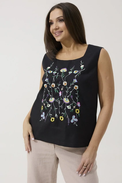 Полочка и спинка цельные. Спереди топа дизайнерская вышивка.