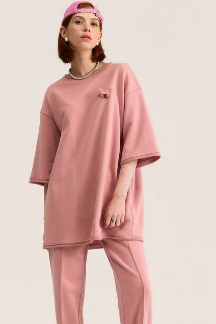 Модель one size. Футболка onesize с декоративным съмным декором, выполнена в двух цветах из футера 3-х нитки петля/диагональ. Спущенная линия плеча, овальная форма горловины. Низ изделия, рукавов и горловины обработны бейкой с открым срезом. Футболка создает локаничный, стильный образ.
