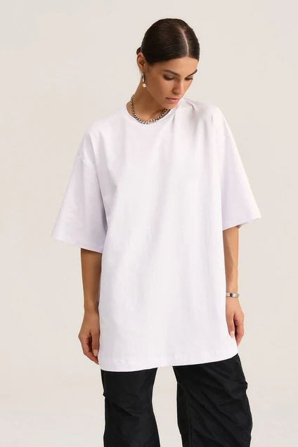 Футболка в стиле onesize свободного силуэта со спущенной линией плеча выполнена из кулирки. Вырез горловины овальной формы. Рукава втачные, одношовные. Такая футболка отлично дополнит любой образ. Представлена в двух цветах. Модель one size (42-52).
