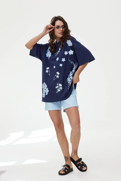 Футболка onesize свободного силуэта со спущенной линией плеча. Выполнена модель из кулирки. Вырез горловины овальной формы. Рукава втачные, одношовные. Такая футболка станет незаменимым элементом любого гардероба.