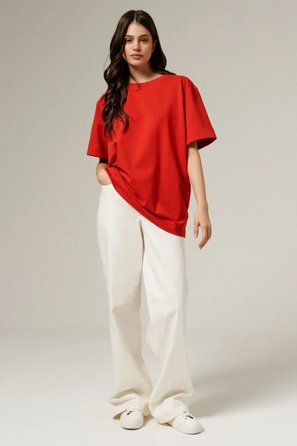 Джемпер женский из хлопковой ткани для повседневной носки. Изделие прямого силуэьа с коротким втачным рукавом. Горловина круглая оформлена рибаной. Длина изднлия классическая. 44 Джемпер: Длина изделия - 74см, Длина рукава - 25см, Ширина плеча - 12,5см, Ширина по груди - 56см, Ширина по низу - 56см, Ширина рукава - 20,7см