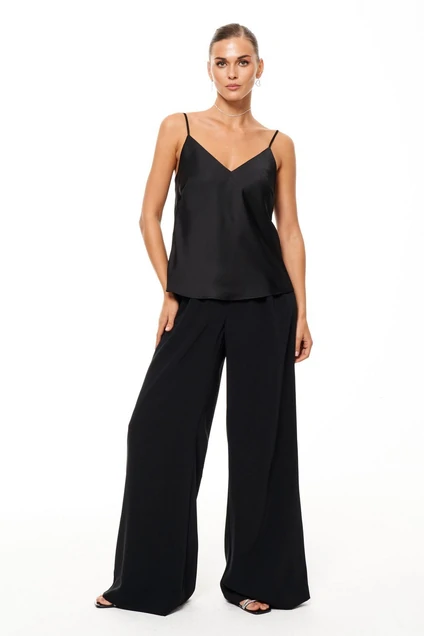 Этот базовый топ из струящейся ткани — идеальный элемент вашего гардероба, который легко впишется в любой образ. Выполненный из легкой атласной ткани, он придает образу элегантность и легкость, идеально подходя для повседневной носки. Регулируемые бретели позволяют настроить идеальную посадку, а V-образный вырез подчеркнет линию шеи, создавая утонченный и женственный силуэт. Нагрудные вытачки добавляют дополнительную изысканность и обеспечивают отличную посадку по фигуре.