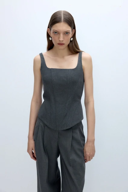Корсет с глубоким квадратным вырезом.