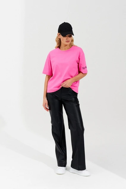 Джемпер из хлопкового трикотажа прямого силуэта. Горловина оформлена аккуратной планкой. Джемпер декорирован оригинальной авторской вышивкой на рукаве. Линия плеча спущена .Рукав ¾.