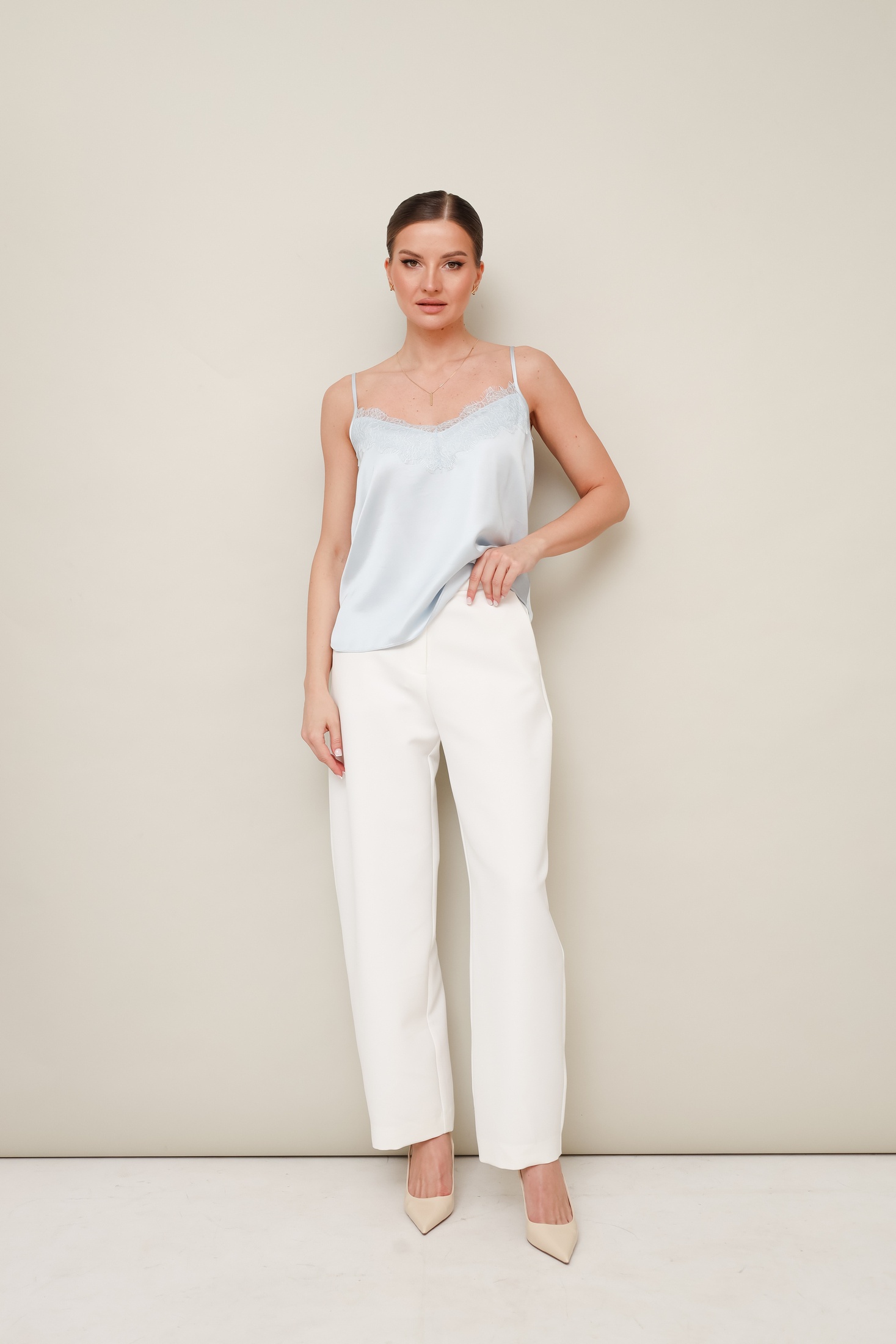 Топ 11-490 Pur Pur – изысканный элемент вашей одежды, выполненный в бельевом стиле. Коллекция бренда Pur Pur сочетает в себе утонченность и комфорт. Изготовленный из качественного полиэстера, он обеспечивает мягкость и легкость. Приталенный фасон с тонкими бретелями и регулируемым V-образным вырезом подчёркивает достоинства фигуры. Особое внимание привлекает французское кружево, декорирующее верхний край переда и спинки. Летний сезон – идеальное время для демонстрации стильного топа в повседневных и вечерних образах. Голубой цвет добавляет нотки свежести и исключительности вашему гардеробу.