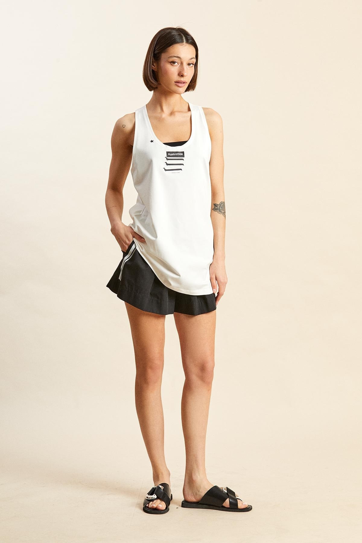 Майка 6062-4 белый Rivoli — это идеальный выбор для любого летнего гардероба. Коллекция бренда Rivoli предлагает свежий и стильный дизайн, выполненный из качественного хлопка с добавлением эластана для комфорта и свободы движений. Трапециевидный силуэт и укороченная линия плеча придают изделию современный вид, а расширенная и углубленная круглая горловина подчеркивает стильный и расслабленный образ. Уникальные принты, нанесенные как спереди, так и сзади, добавляют игривости и позволяют выразить индивидуальность. Белый цвет майки делает её универсальным элементом гардероба, подходящим для разных повседневных образов и различных стилей. Идеально подходит для летнего сезона и повседневного ношения.
