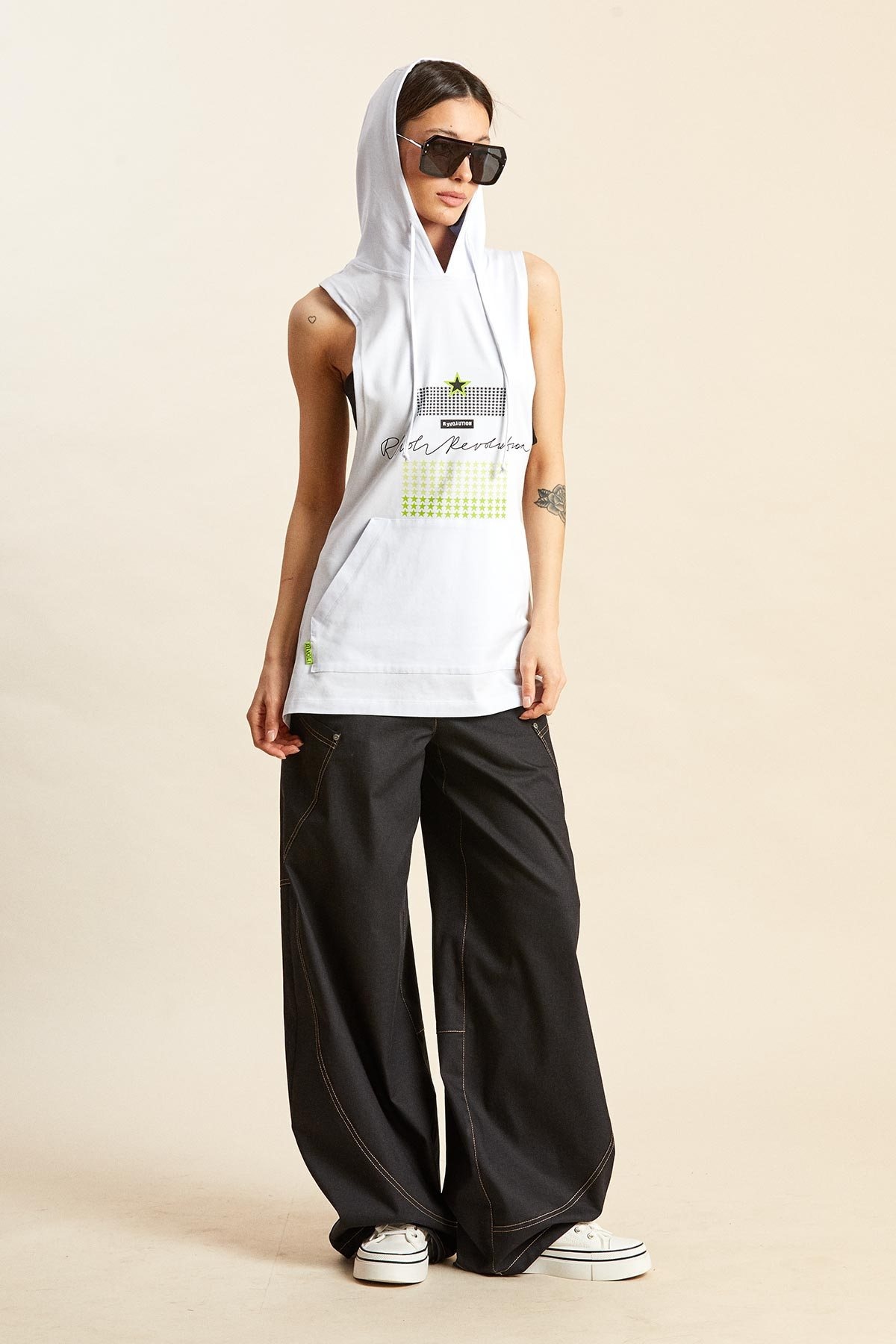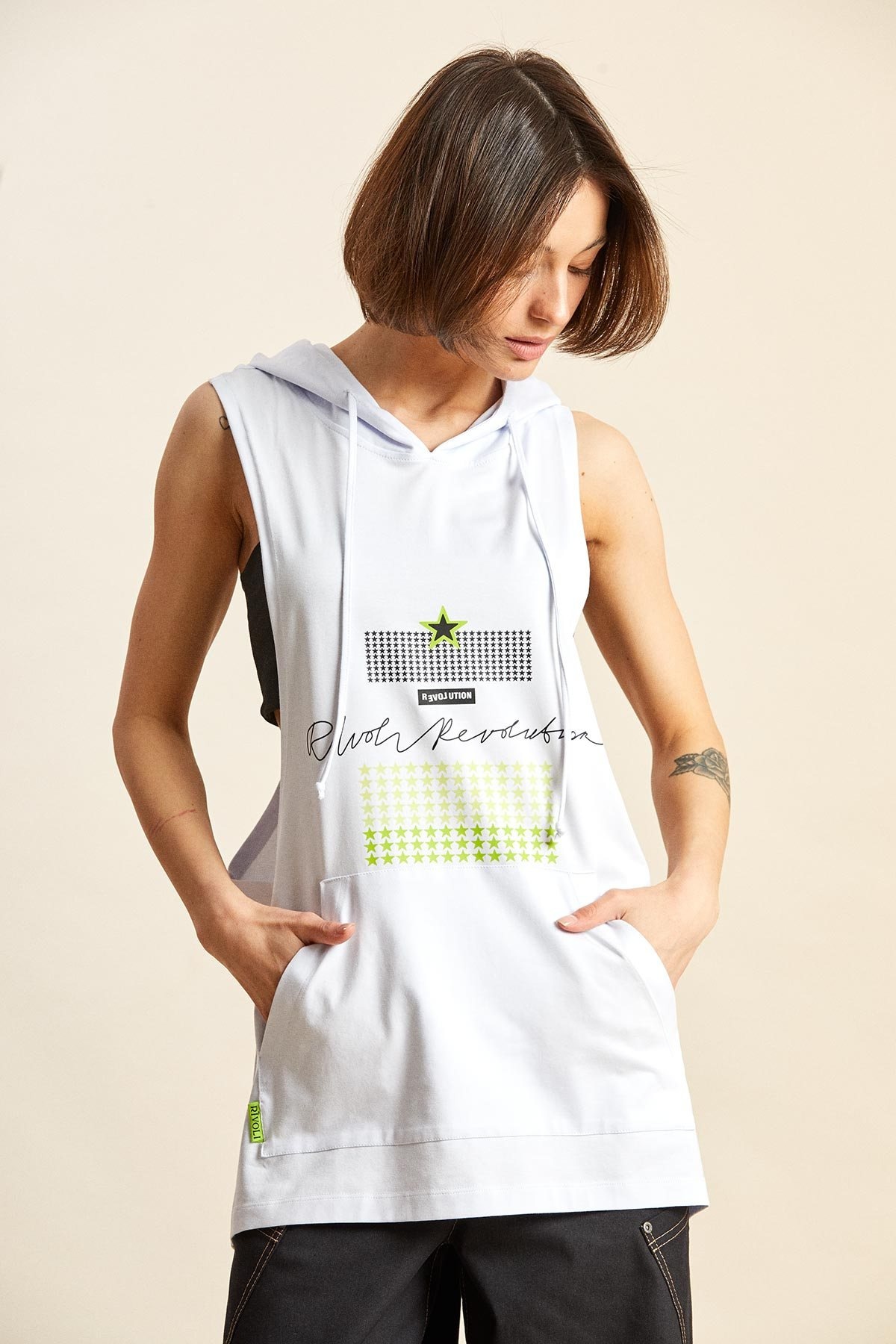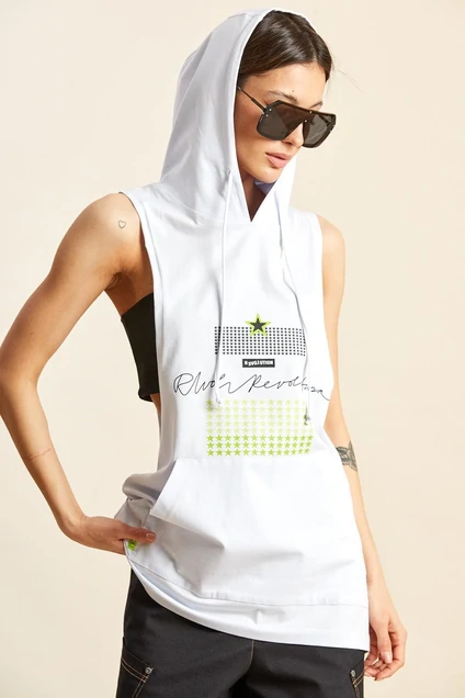 Майка 6063 белый Rivoli — это идеальное сочетание стиля и комфорта для повседневной носки. Коллекция бренда Rivoli отличается оригинальностью и удобством, и эта модель не исключение. Изготовленная из мягкого хлопка с добавлением эластана, майка обладает высокой воздухопроницаемостью и комфортом в носке. Прямой силуэт майки дополнен укороченной линией плеча и зауженной спинкой для легкой и непринужденной посадки. Особенностью данной модели является трехшовный капюшон с завязками и накладной карман-кенгуру на передней части. Стильный дизайн с принтами спереди и сзади делает ее идеальной для активного отдыха и прогулок. Белый цвет и практичный фасон делают майку универсальным элементом гардероба на летний сезон.