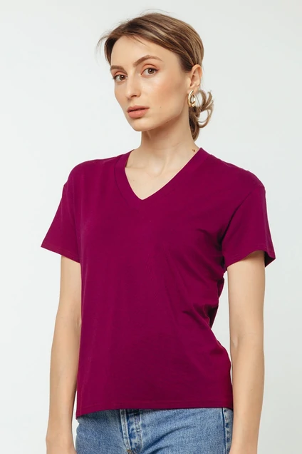 Базовая женская футболка прямого кроя правильной длины с V-образным вырезом подходит всем типам фигур. Свободная посадка, удобно носить навыпуск или заправлять. Выполнена из плотного и мягкоговискозного полотна приятного к телу.  Не скатывается, не просвечивает и сохраняет форму и цвет даже после множества стирок.  РЕКОМЕНДАЦИИ ПО УХОДУ: Для придания первоначальной структуры и формы изделию после покупки - постирать и погладить. Стирать с вещами похожего цвета и вынимать сразу после стирки. Гладить с изнаночной стороны. Обязательно ознакомьтесь с инструкцией на вшивной ленте.