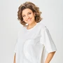 Джемпер прямого силуэта с втачным спущенным рукавом. По левой части переда объемный цветок в тон. Горловина обработана бейкой. Низ футболки и рукавов обработаны на плоскошовной машине. Шов втачивания горловины с отсрочкой.