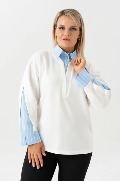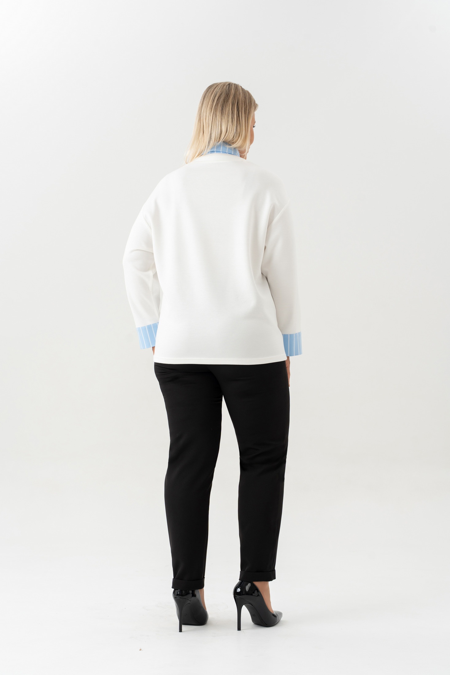 Практичный и удобный – он станет Вашей любимой туникой, а трендовый дизайн делает его актуальным решением для девушек, которые следят за модой. Свитшот женский с имитацией рубашки- новинка коллекции. Изготовленный из качественного трикотажа и полоски на х/б основе, он обеспечивает дышащие свойства и гипоаллергенность, что особенно важно для женщин с чувствительной кожей. Подходит на осень, весну и для зимы. Ткань необычайно мягкая и приятная к телу. Свободный оверсайз крой изумительно подойдет для девушек и женщин больших размеров. На свитшоте обработан воротник и застежка –планка на петли и пуговицы. Рукав комбинирован из двух тканей, с манжетой и разрезом. Модель подходит для высоких и для невысоких. Такая модель должна быть в каждом гардеробе.