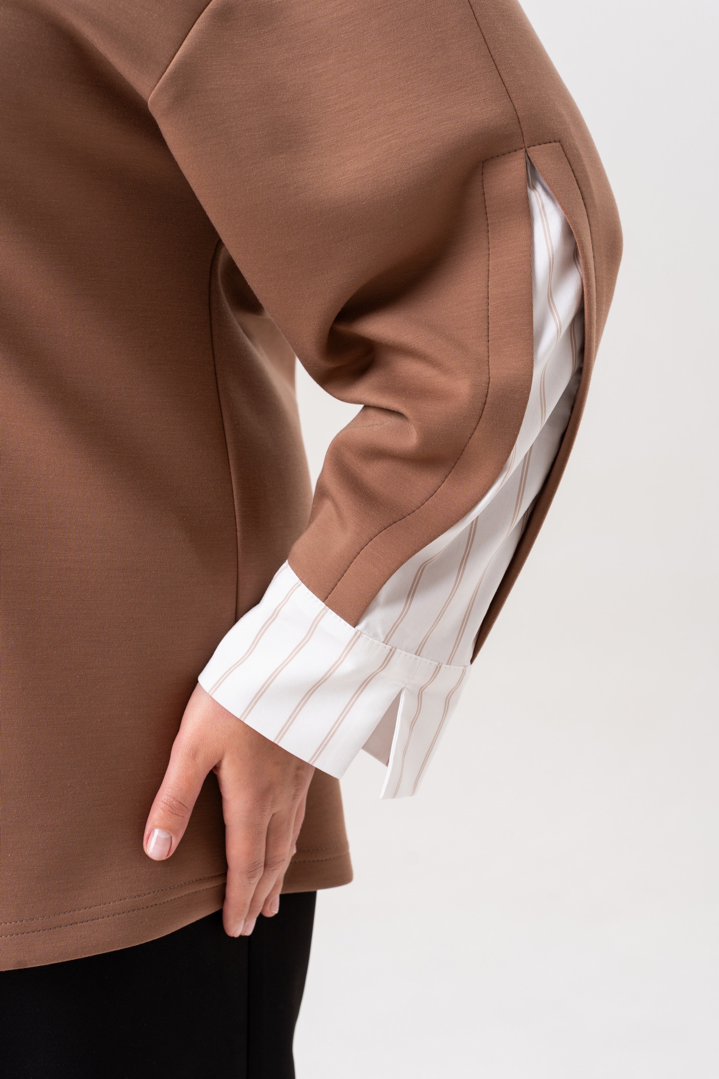 Практичный и удобный – он станет Вашей любимой туникой, а трендовый дизайн делает его актуальным решением для девушек, которые следят за модой. Свитшот женский с имитацией рубашки- новинка коллекции. Изготовленный из качественного трикотажа и полоски на х/б основе, он обеспечивает дышащие свойства и гипоаллергенность, что особенно важно для женщин с чувствительной кожей. Подходит на осень, весну и для зимы. Ткань необычайно мягкая и приятная к телу. Свободный оверсайз крой изумительно подойдет для девушек и женщин больших размеров. На свитшоте обработан воротник и застежка –планка на петли и пуговицы. Рукав комбинирован из двух тканей, с манжетой и разрезом. Модель подходит для высоких и для невысоких. Такая модель должна быть в каждом гардеробе.