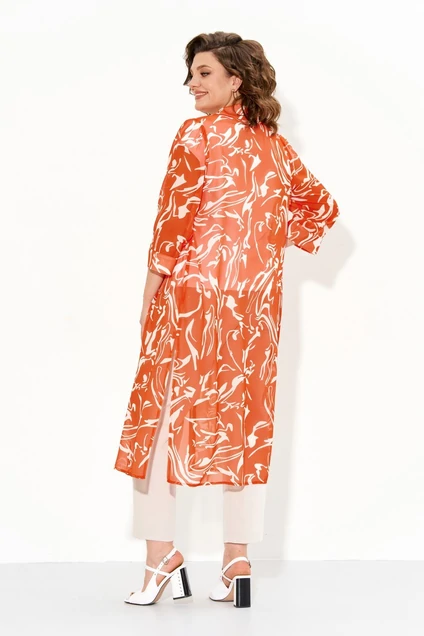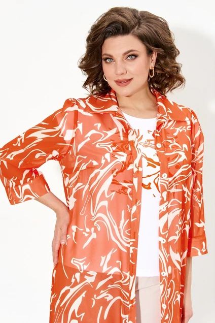 Туника женская прямого силуэта из шифона со втачными рукавами и разрезами по бокам, застежка-планка на петли и пуговицы. Уход за изделиями из шифона: - к шифону применима ручная стирка в теплой воде не более 30 градусов; - если есть необходимость использования стиральной машины, выбирайте деликатный режим и температуру не выше 30 градусов; - после стирки не отжимайте шифон, повесьте платье на плечики до полного стекания воды; - гладить необходимо с изнаночной стороны при температуре 110 градусов.