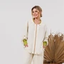 Летний льняной бомбер слоновой кости с нежным оттенком придает изысканность и утонченность вашему образу. Дизайн дополнен функциональной молнией спереди и кулиской по горловине, что позволяет регулировать облегание. Рукава украшены регулируемыми патами, позволяющими адаптировать длину и объем по вашему вкусу. Элементы дизайна, такие как накладные карманы, добавляют удобства и стильные акценты, делая этот бомбер идеальным дополнением к вашему летнему гардеробу.