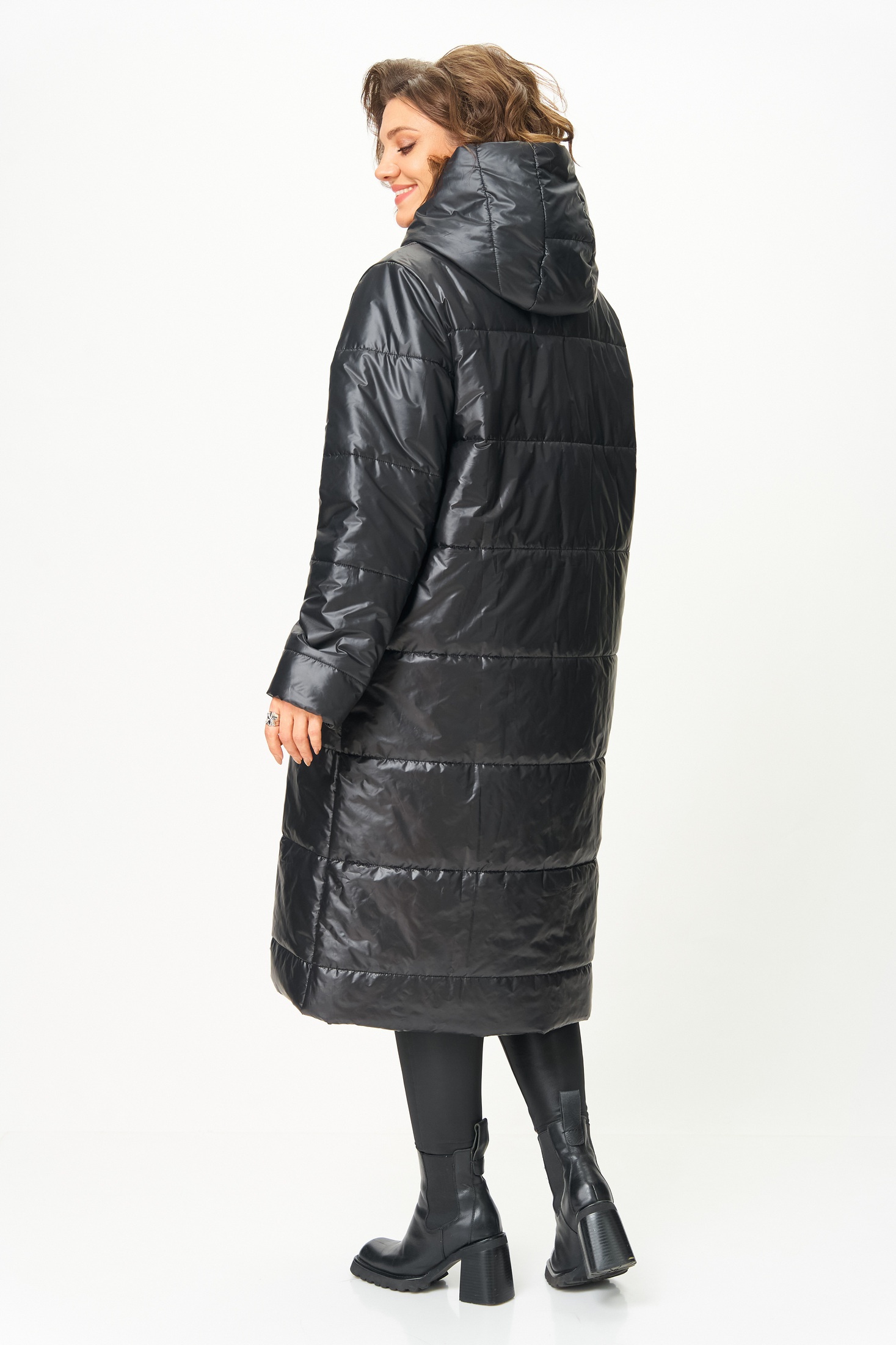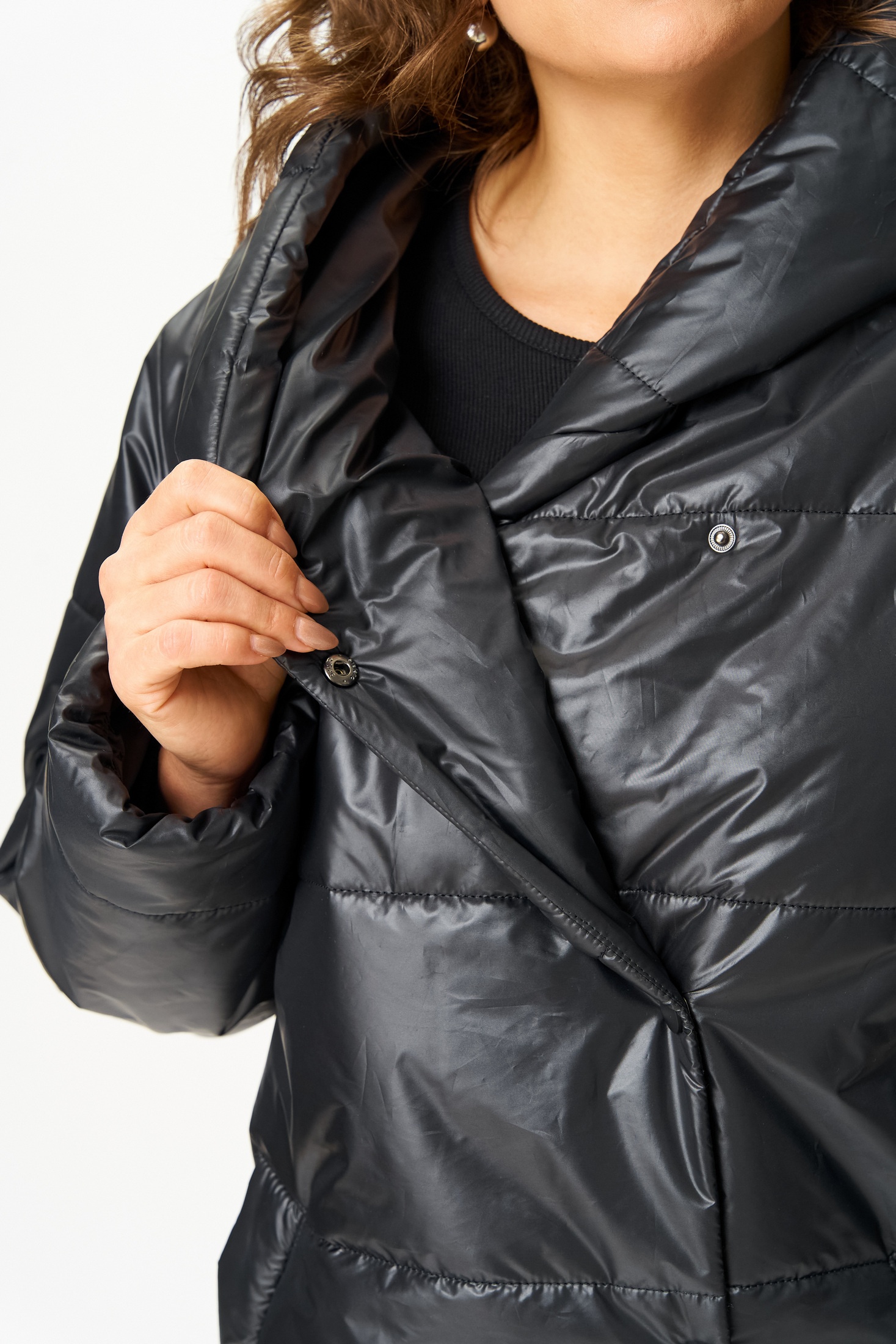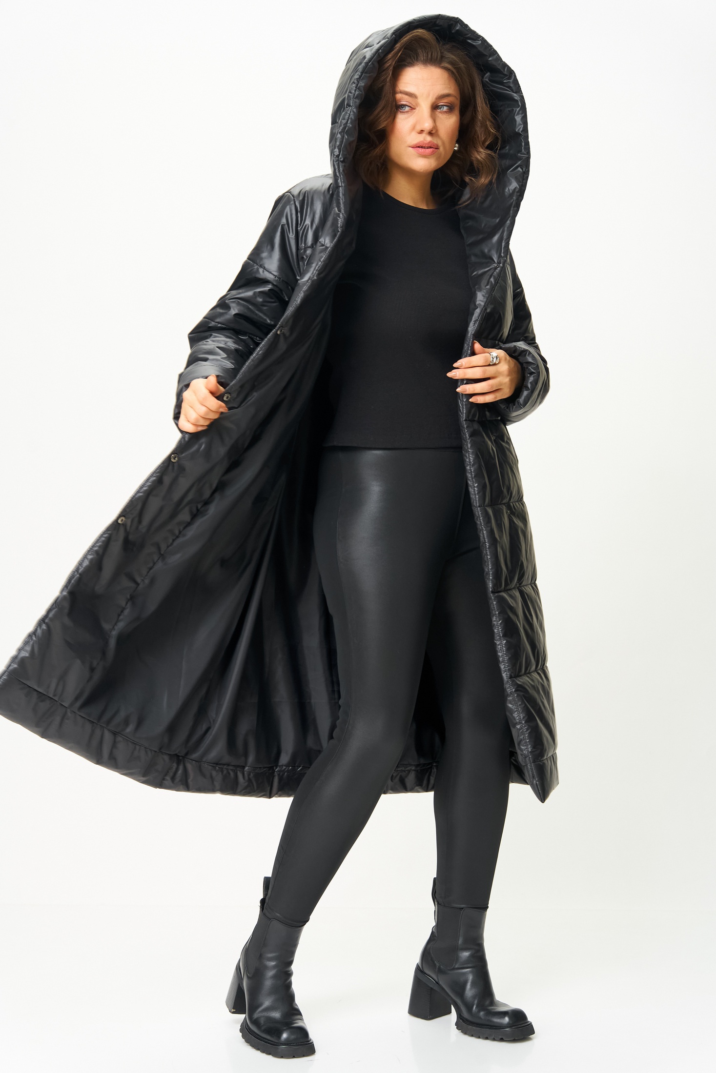 Полочка с центральной застежкой на кнопки. На полочке выполнены карманы с листочкой. Спинка цельная. Пальто с капюшоном. Рукав одношовный, втачной, по низу рукава, с внутренней стороны настрочена резинка. Пальто на подкладке.