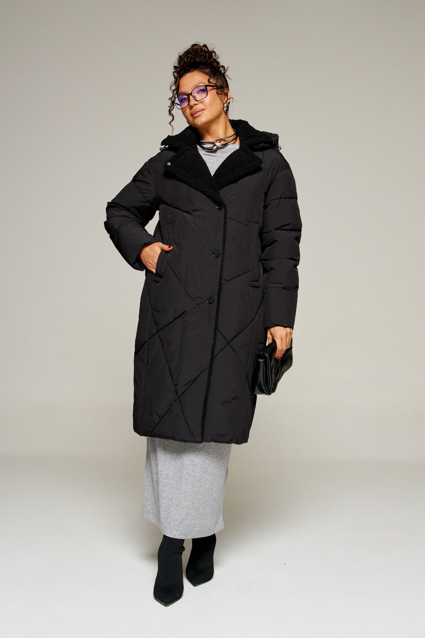 Зимнее, стеганое пальто прямого силуэта для ценителей стиля и практичности. Это отличное сочетание современных материалов и точного кроя.