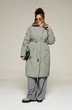 Капюшон съемный (на кнопках) умеренного объема. По периметру капюшона протянут шнур в цвет изделия с декоративными металлическими фиксаторами.