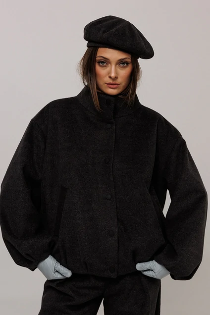 Элегантная куртка классического темно-серого цвета, выполненная из высококачественной пальтовой ткани. Дизайн куртки отличают широкие рукава с оригинальными складками у манжет, добавляющие изысканности образу. Прямой силуэт с немного спущенной линией плеч делает акцент на расслабленной посадке, подчеркивая современный стиль. Модель оборудована удобным центральным застежкой на кнопки и стильным воротником-стойкой, также с застежкой на кнопку. Функциональность куртки дополняют карман-листочка на полочке и подкладка. Дополнительные складки на низу полочки и спинки создают интересный объемный силуэт. Эта куртка станет идеальным выбором для создания уникальных и стильных образов в холодное время года.