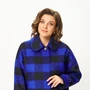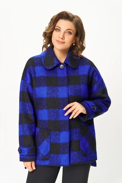 Элегантное полупальто прямого кроя с узором в крупную клетку, выполненное в насыщенных оттенках василька и чёрного. Изделие дополняется классическим воротником, удобными накладными карманами и застёжкой на крупные пуговицы спереди. Рукава прямого кроя украшены манжетами с кнопками, подчеркивающими общую стильность модели. Длина изделия составляет 79 см, идеально подходит для создания элегантного осенне-весеннего образа.