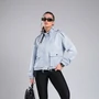 Эта короткий жакет обеспечивает максимальный комфорт благодаря своей форме. Жакет из легкой джинсовой ткани, прямого силуэта, по полочке карманы портфели с клапаном и кнопкой, что делает ее функциональной и удобной. Воротник стойка со съемным декоративным хлястиком и шлевками. Рукав втачной на эластичной манжете. По плечу погон. Спинка с кокеткой и декоративным клапаном. Низ регулируемый кулиской. Застежка молния. Без подкладки. Длина 75 см, рукав от горловины 75 см. длина изделия-61см длина от горл рукава-75см