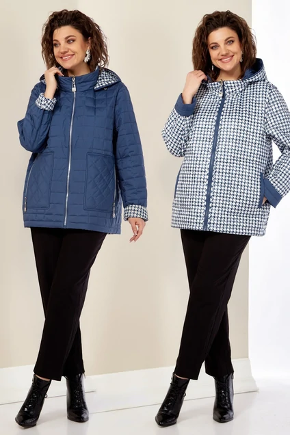 По переду, однотонной стороны изделия, стёжка квадратами и функциональные, накладные карманы на молнии. Капюшон съемный на пуговицах, регулируется при помощи кулиски. Рукав втачной, двухшовный, длина регулируется с помощью отворота.