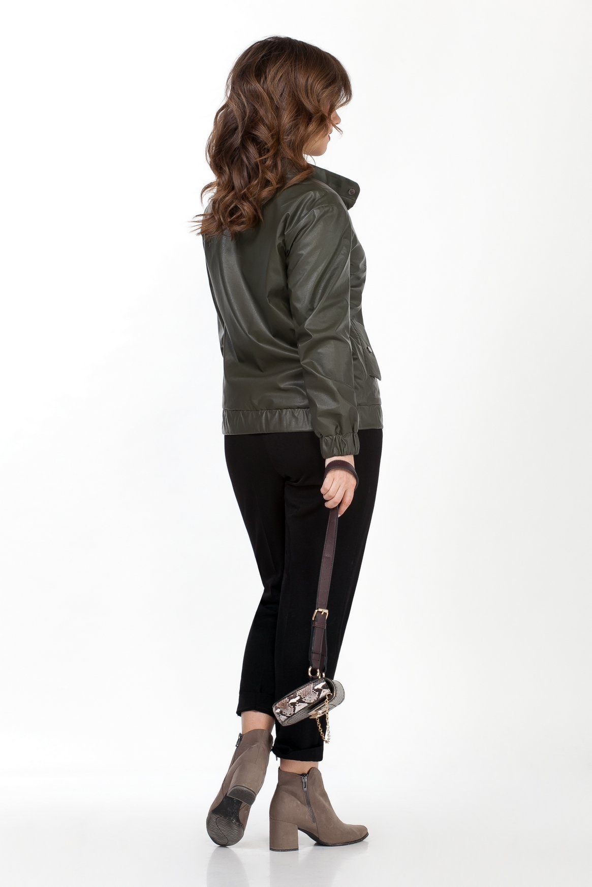 Бомбер из эко кожи. С мягким поясом-резинкой по низу и низу рукава. Рукав втачной длинный. Воротник-стойка. По переду боковые карманы с клапанами. Застежка на кнопки. Бомбер на подкладке.