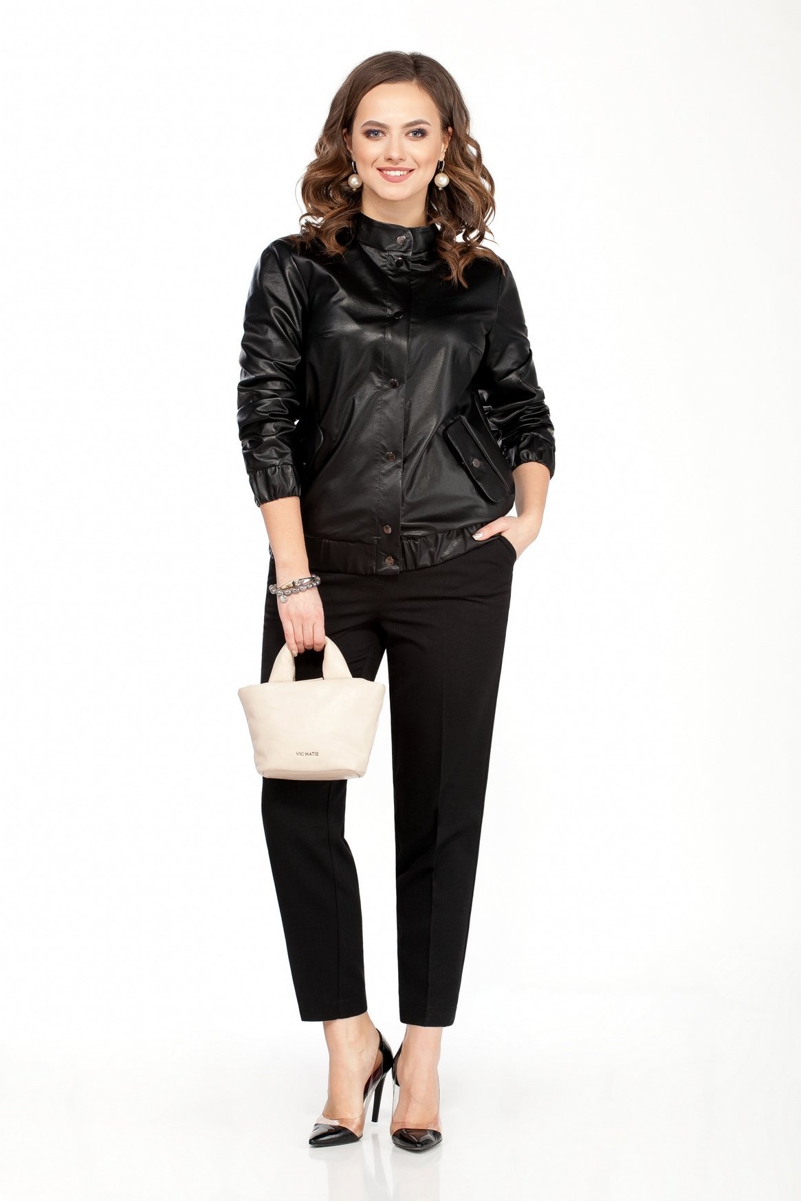 Модный кожаный бомбер прямого силуэта с мягким поясом- резинкой по низу изделия и низу рукава. Воротник стойка. По переду боковые карманы с клапанами. Застежка на кнопки. Бомбер на подкладке.