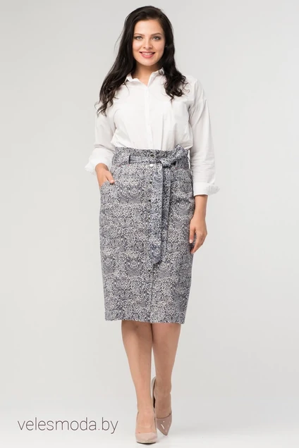 Юбка из хлопковой ткани с высокой посадкой по талии, застегивается по переду на болты и петли пояс на пуговицу. и декоративными пуговицами. Дополнена юбка поясом из основной ткани, юбка имеет два накладных кармана выполняющих функцию как декоротивных эллиментов, придающих бедрам стройность, так и функционального эллемента. Заднее полотнище со средним швом+ 2 вытачки.